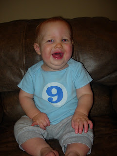 My baby is 9 months old! He is such a happy little guy. He's crawling all over the place, pulling himself up and even letting go of the couch for a second. He is so much fun and brings smiles to everyone around him.